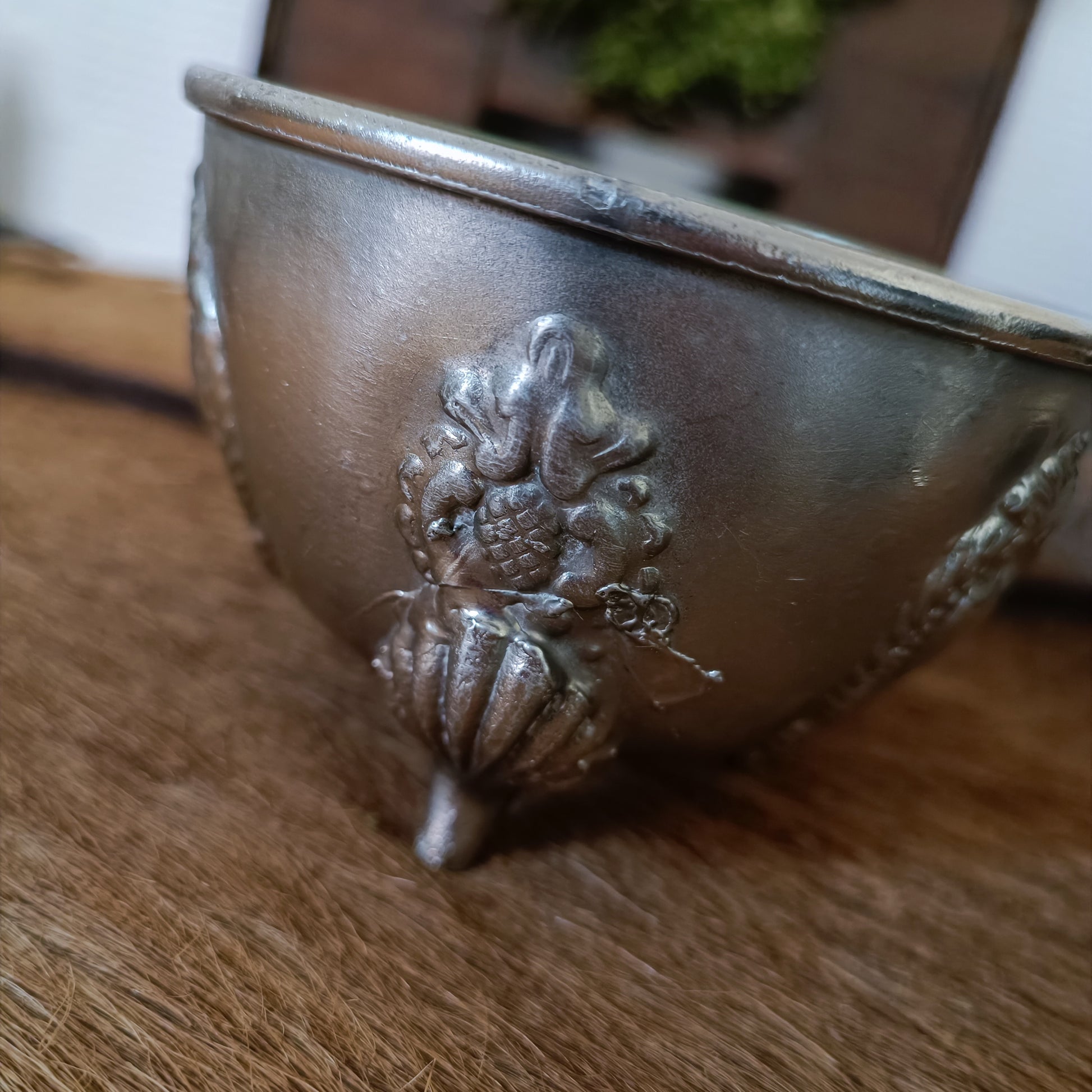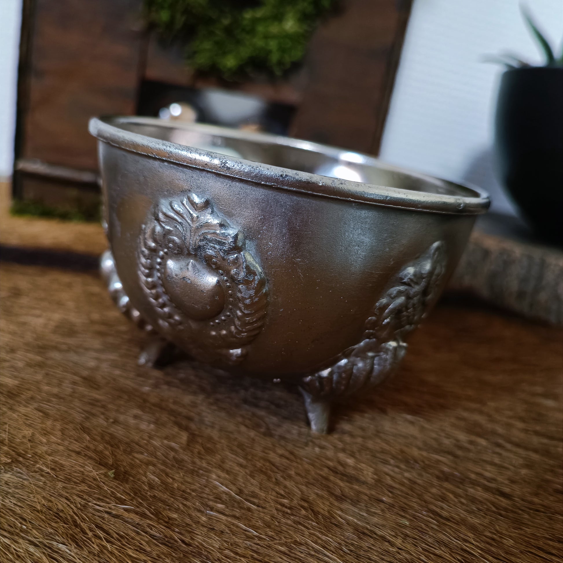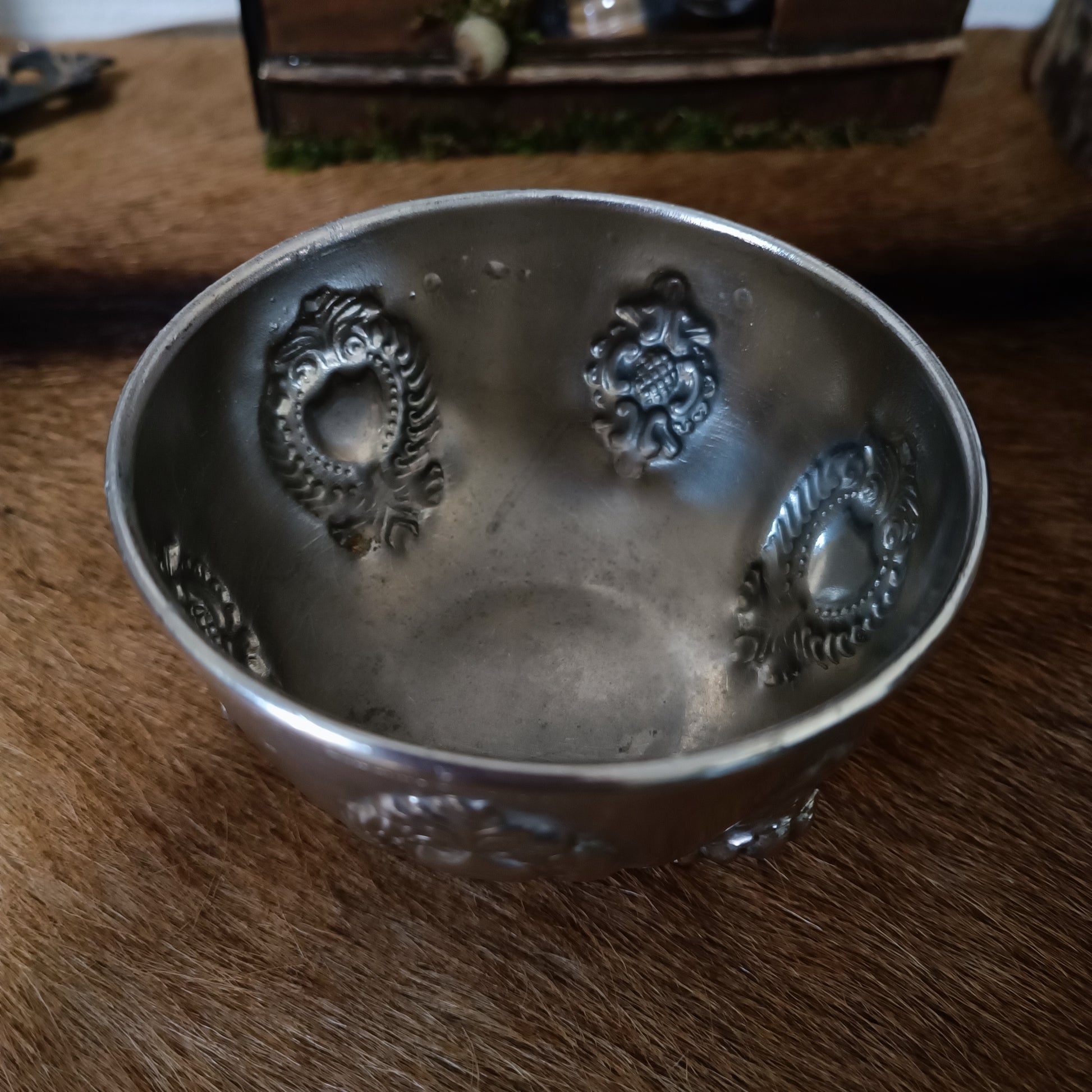 Un bol à rituel incroyable de 7 cm de haut et de 11 cm de circonférence décoré et orné.